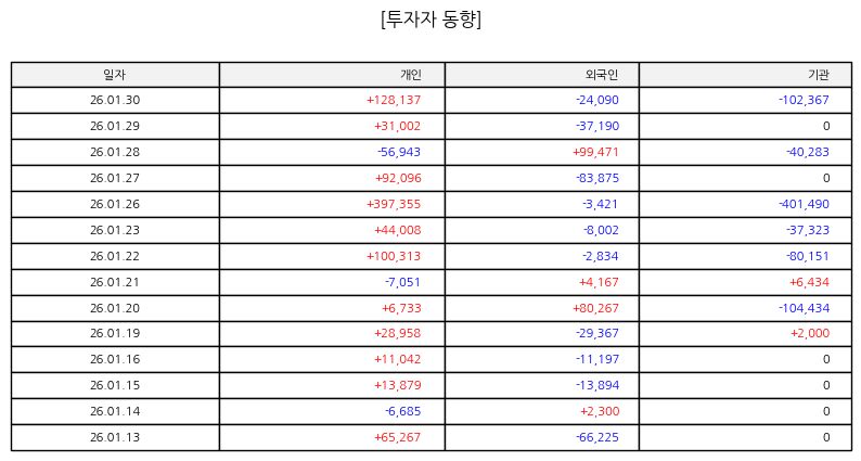 ▷ 금일 주가는 시초가 부근에서 출발한 이후 점진적으로 상승 폭을 키웠다. 오전 시간대 거래량이 빠르게 늘어나며 주가가 탄력을 받았고 오후에는 상승 추세를 유지한 채 마감 흐름을 형성했다. 단기 조정 구간에서도 저가 매수세가 유입되며 상승 추세가 유지된 점이 특징적이다.